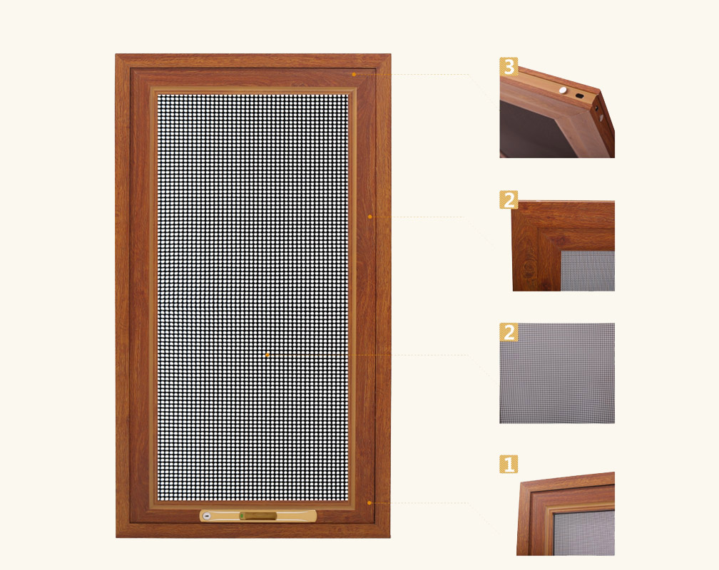 2.纱窗由外框与内扇组合而成,打开锁点,仅需轻轻向上一提,内扇就会与外扇分离,方便安装、清洁、危险时逃生;
