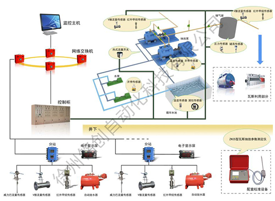 對(duì)井上下抽采管道內(nèi)氣體的流量、溫度、壓力、甲烷濃度、一氧化碳濃度等進(jìn)行連續(xù)監(jiān)測(cè)。自動(dòng)計(jì)算管道瓦斯混合量及累計(jì)量、瓦斯純量及累計(jì)量,并能自動(dòng)記錄、查詢、打印各類數(shù)據(jù)和報(bào)表。采用流量傳感器、壓力傳感器等監(jiān)測(cè)管道參數(shù)。當(dāng)監(jiān)測(cè)點(diǎn)數(shù)據(jù)超過(guò)設(shè)定報(bào)警值時(shí),及時(shí)發(fā)出聲光警報(bào)信號(hào)。