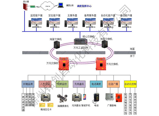 金屬非金屬礦山綜合監(jiān)控管理系統(tǒng)是針對(duì)我國非煤礦山現(xiàn)狀而開發(fā)的一套軟、硬件結(jié)合的全礦井生產(chǎn)綜合監(jiān)控系統(tǒng)??蓪?duì)礦山井下環(huán)境、人員定位、電話調(diào)度、廣播通訊、無線通訊(WIFI、4G)、視頻監(jiān)控、機(jī)車運(yùn)輸監(jiān)控、風(fēng)機(jī)在線監(jiān)測等參數(shù)進(jìn)行綜合監(jiān)控管理。井下通過冗余工業(yè)以太環(huán)網(wǎng),利用多功能監(jiān)測基站,結(jié)合總線等傳輸方式將井下各種子監(jiān)控系統(tǒng)合理地融合為一體,在方便管理維護(hù)的基礎(chǔ)上大大節(jié)約了投資成本。
