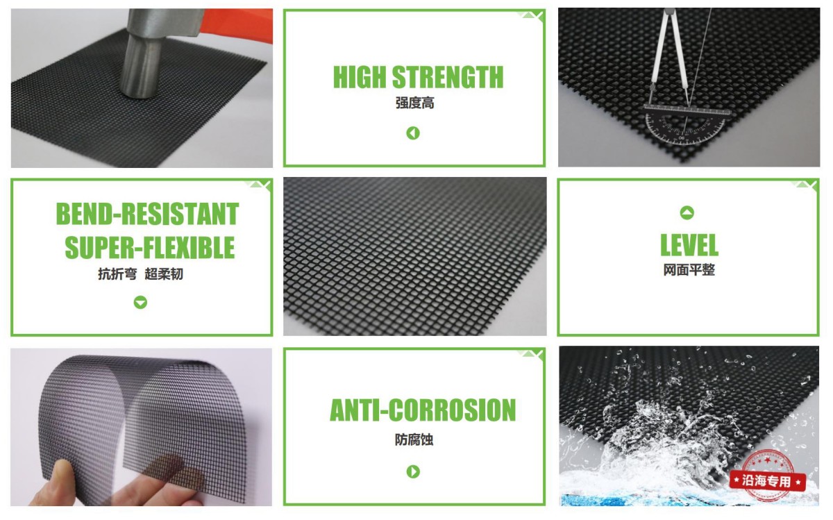 1)强度高,0.45mm合金网强度可同普通金刚网0.7mm强度媲美