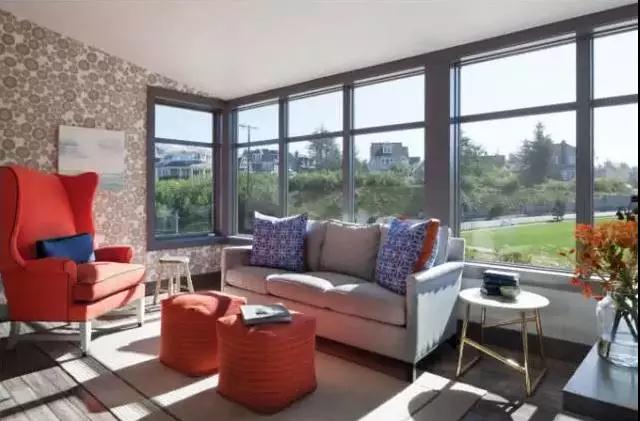 装配金刚纱网的系统门窗,结合了大面积的固定设计,大开大合中给人以通透清澈之感。