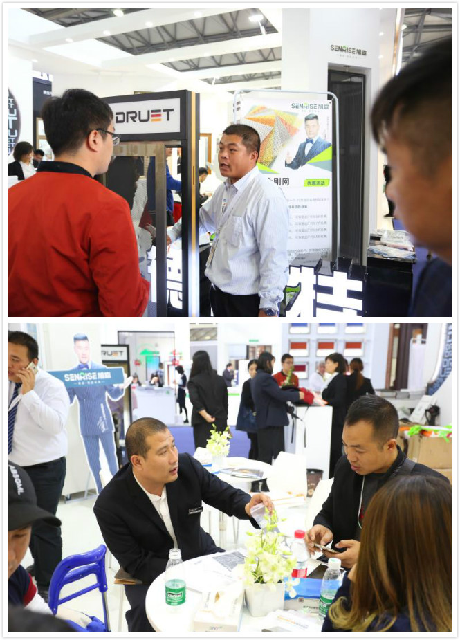展会现场人群川流不息,旭森、纱视界、德鲁特展位不仅吸引了国内客户,许多外国友人也选择进店询问,尤其旭森金刚网1200万蓝光防伪双保险、纱视界纱窗防蚊防盗的强大功能以及德鲁特匠心独特的门窗系统吸引了众多粉丝。